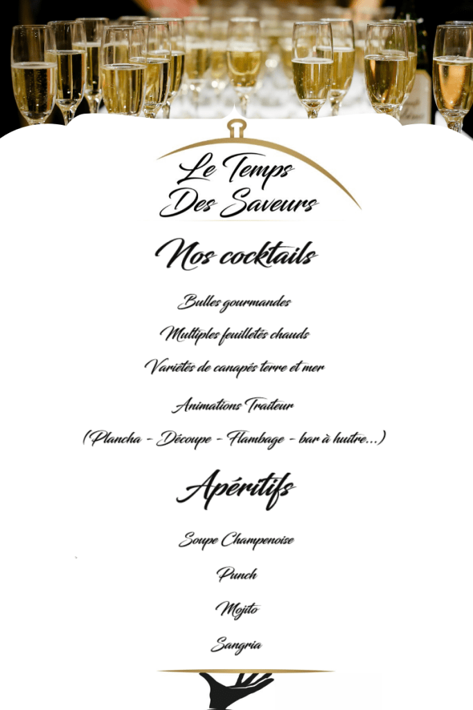 Un Mariage, Un Gala d’entreprise, un repas d’anniversaire, Le Temps Saveurs vous propose une gamme qui s’adapte à votre lieux et vos contraintes.